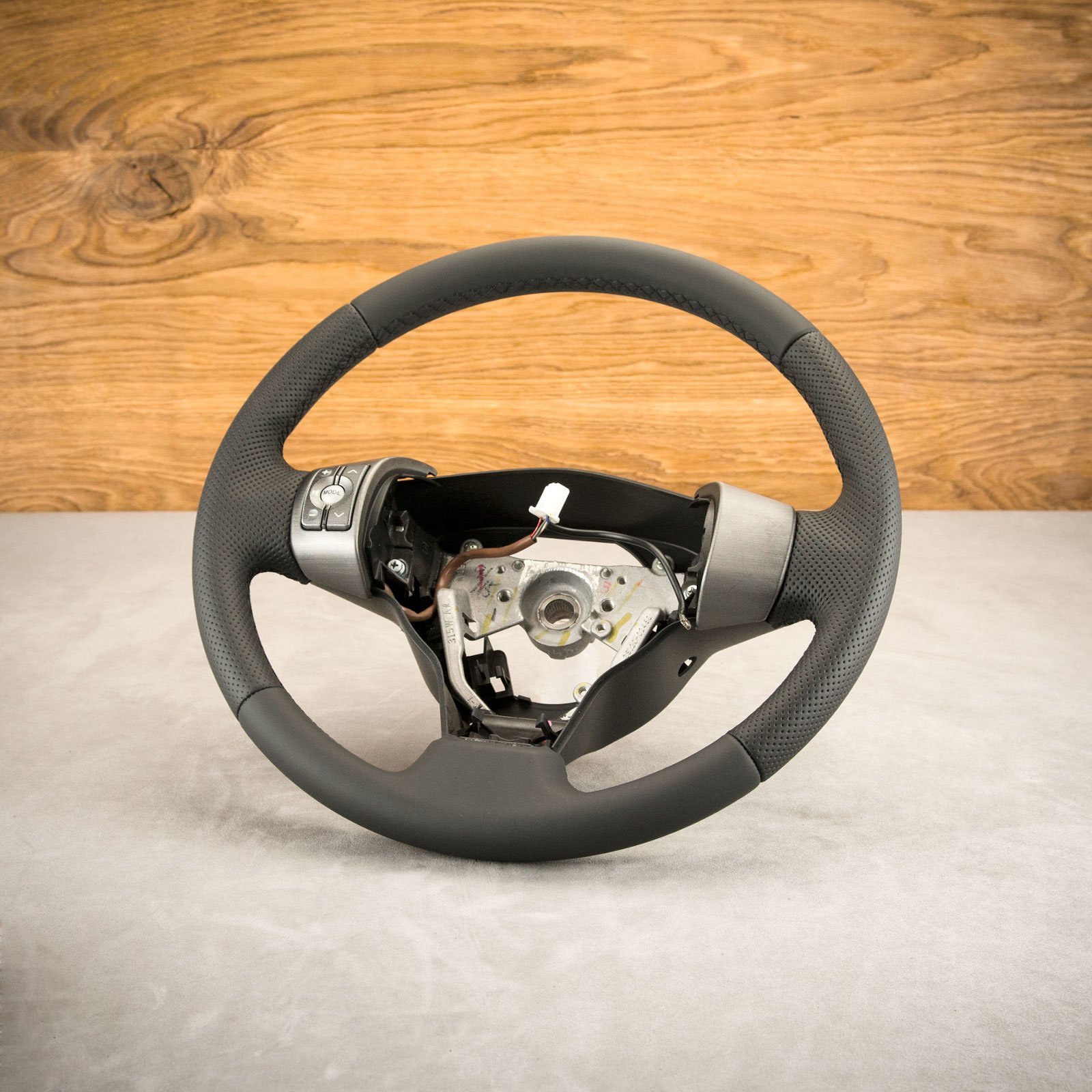 Dziś prezentujemy wam kierownice do Toyota RAV4 2008. Stara i zniszczona kierownica nabrała zupełnie nowego wyglądu. Kolejna niewielka zmiana, która znacznie poprawia zarówno wygląd kierownicy jak i komfort jazdy.
