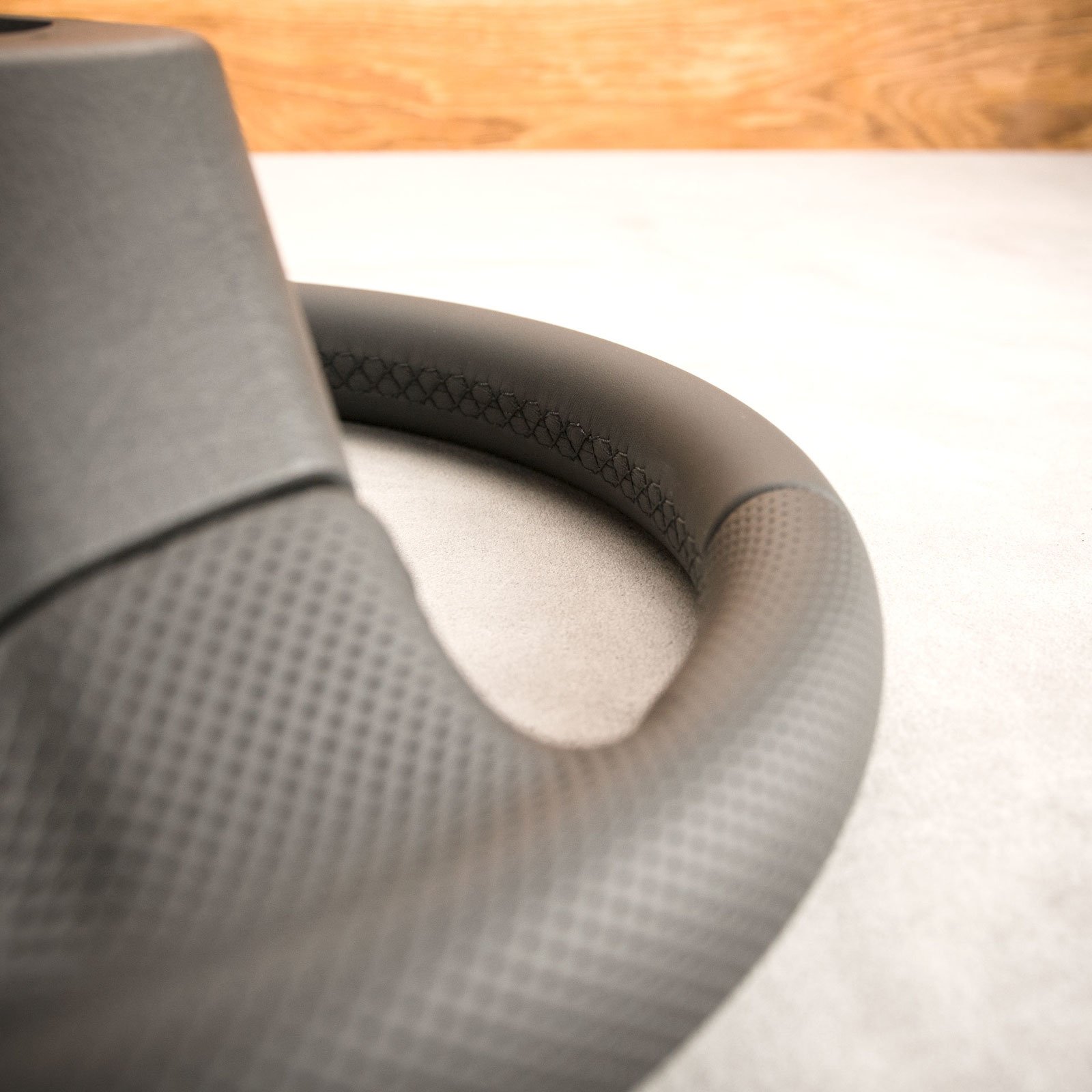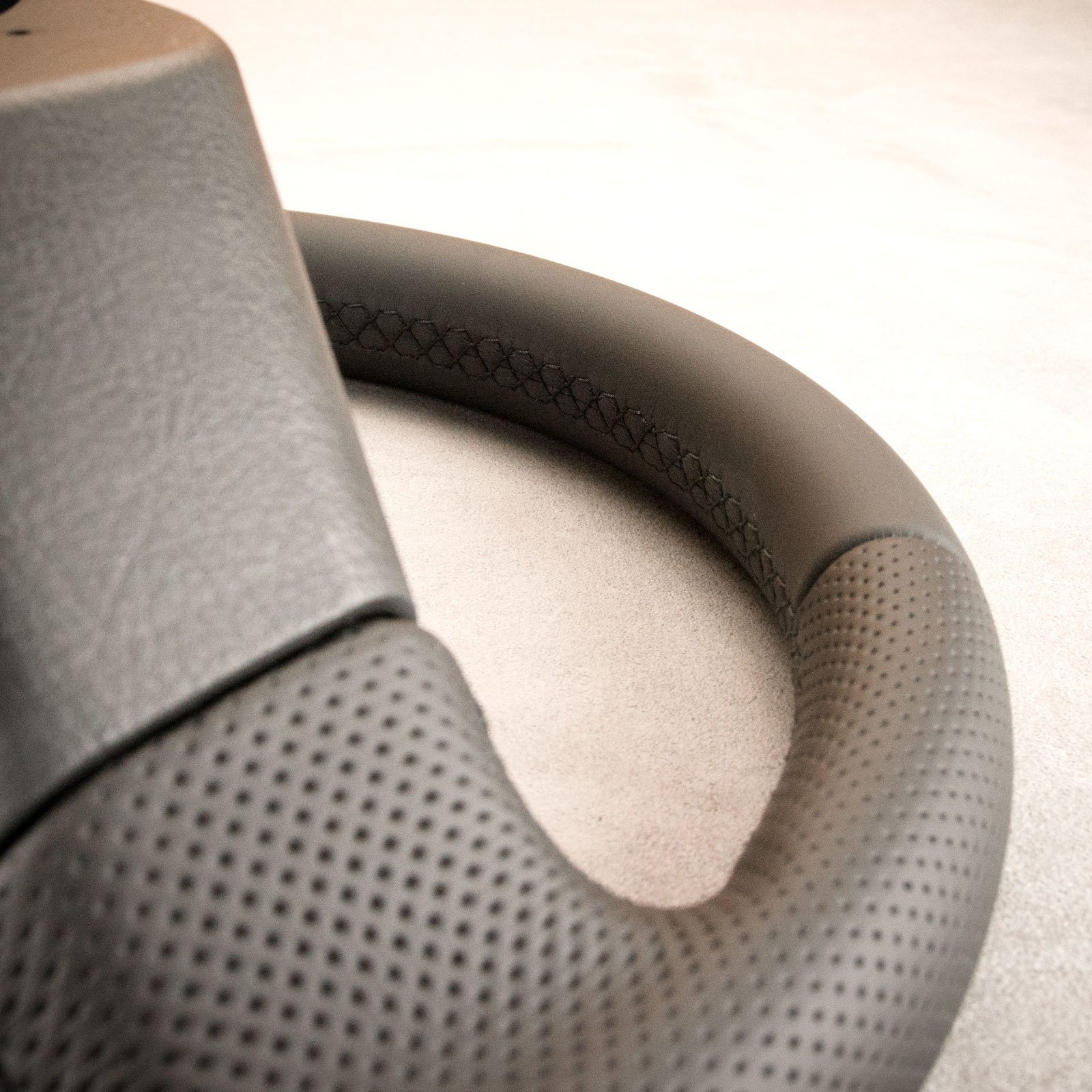 Kierownica została na nowo obszyta skórą gładką Nappa (góra i dół) oraz skórą perforowaną (boki).