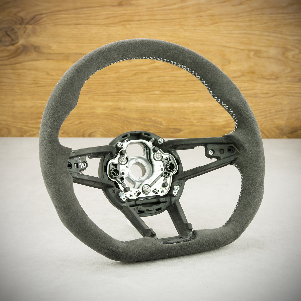 Po obszyciu kierownica Audi TT 8S nabrała zupełnie nowego wyglądu. Kierownica w całości została obszyta na nowo Alcantarą®. Jest to materiał dostosowany do obszywania kierownic i stosowany w motoryzacji. Alcantara® jest bardzo przyjemna w dotyku oraz bardzo elegancka. Szew X-Performance jest często wybierany przez naszych klientów.