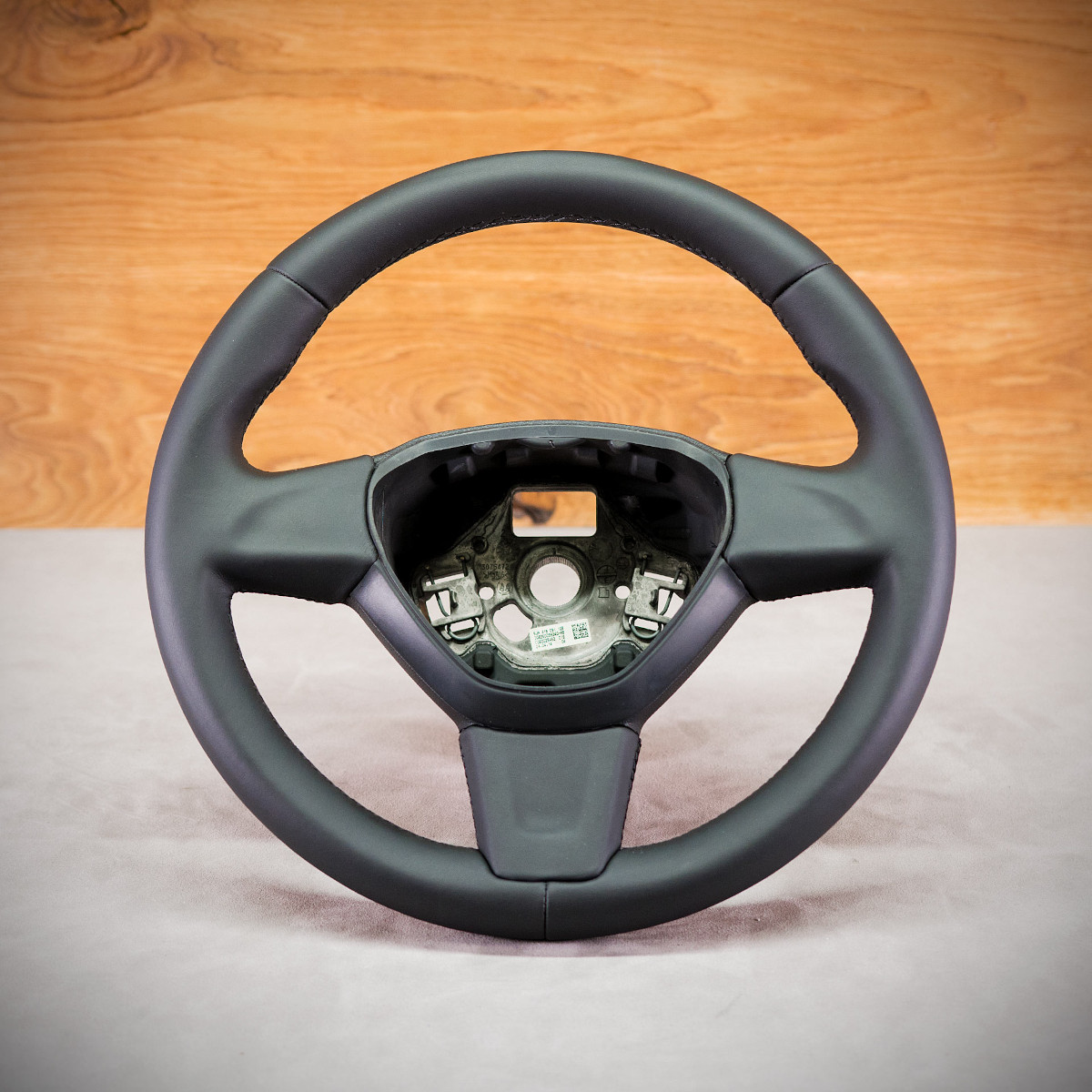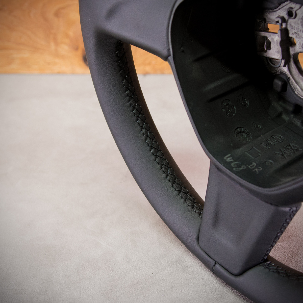 Kierownica Skoda Fabia w całości została na nowo obszyta skórą gładką Nappa. Jest to jedna z najwyższej jakości skór dostępna na rynku europejskim. Ten szlachetny materiał zastosowany zapewnia bardzo przyjemny dotyk, jak i niezwykłą trwałość. Zastosowany szew seryjny jest najpopularniejszym szwem na rynku motoryzacyjnym.