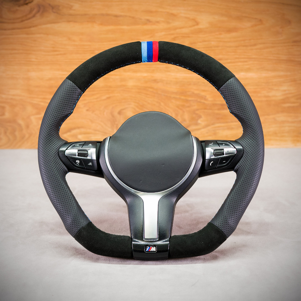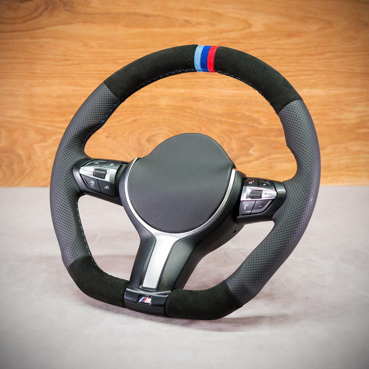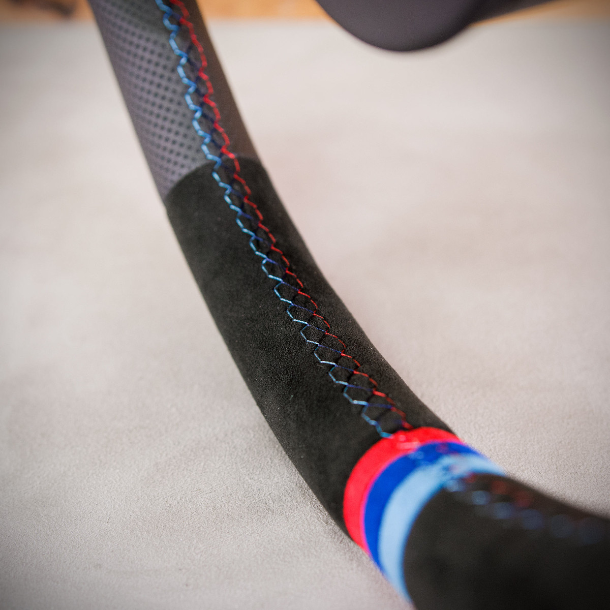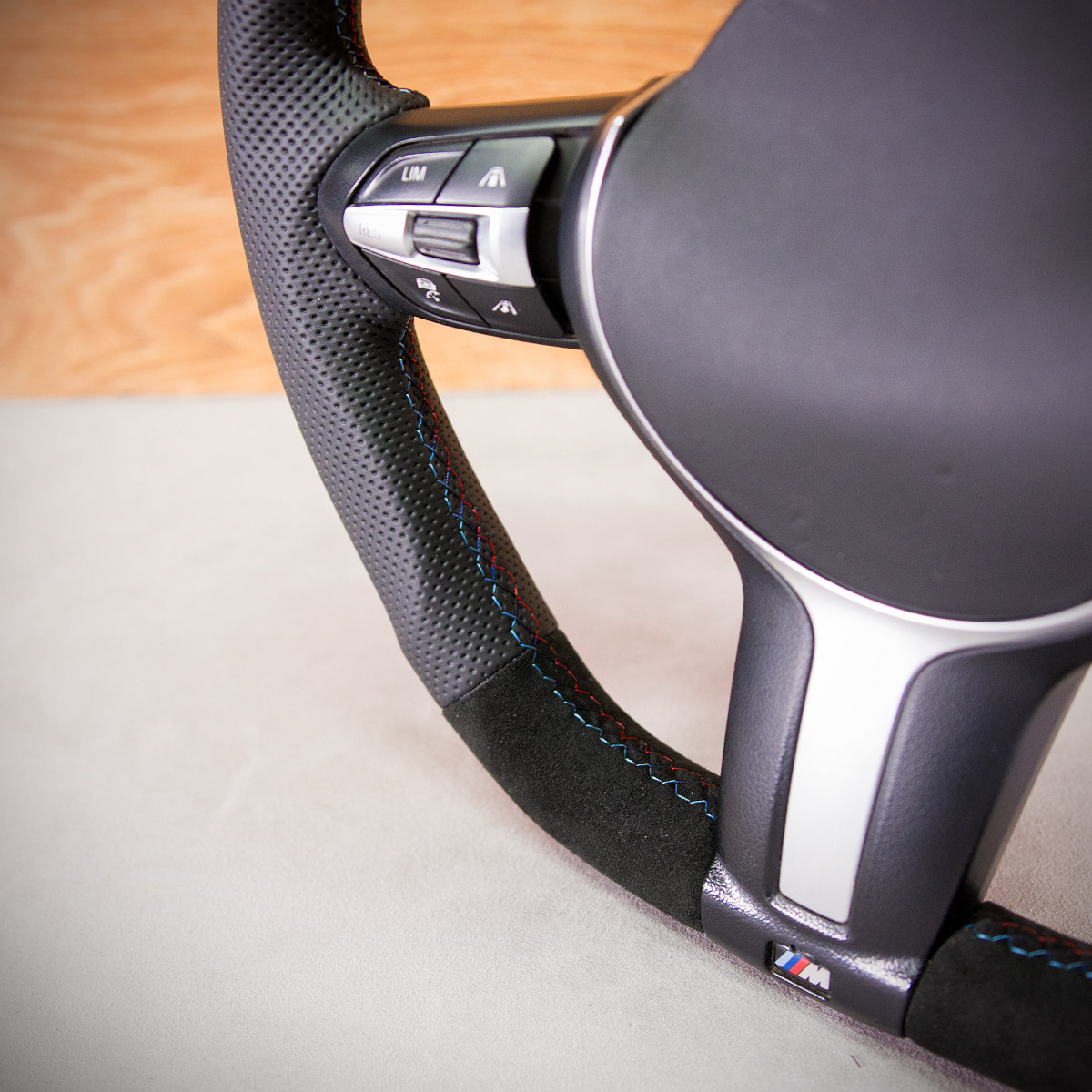 Bardzo wyraźny tuning kierownicy BMW F32 poprzez połączenie modyfikacji oraz obszycia. Kierownica obszyta Alcantarą® oraz skórą perforowaną. Są to materiały najlepszego gatunku stosowane na rynku motoryzacyjnym. Alcantara jest bardzo modna oraz elegancka. Perforowana skóra zalecana jest na boki. Perforacja, czyli dziurki, nie są wykonane na wylot a jedynie wytłoczone w skórze. To nadaje komfort trzymania.