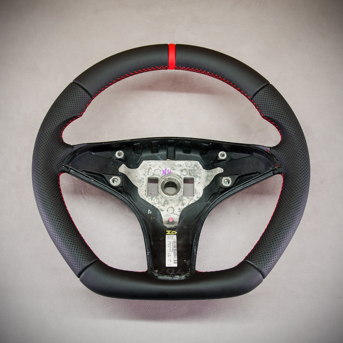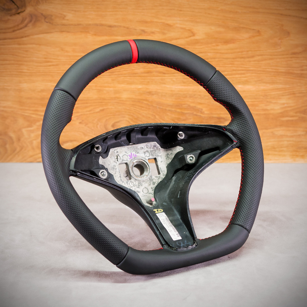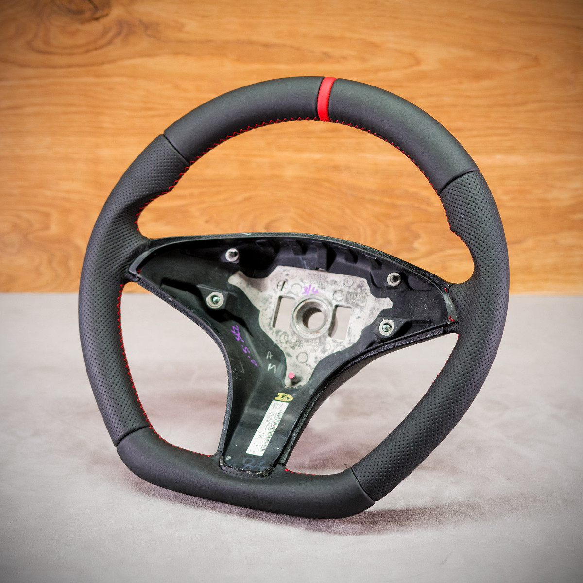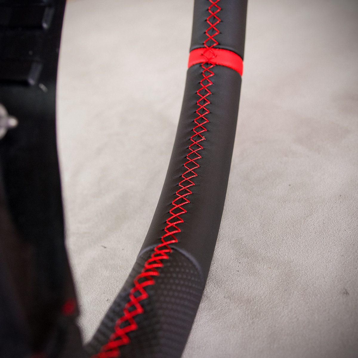 Bardzo wyraźny tuning kierownicy Mercedes-Benz W204 poprzez połączenie modyfikacji oraz obszycia. Kierownica obszyta skórą gładką oraz perforowaną. Są to skóry najlepszego gatunku dostępne na rynku europejskim. Skóra gładka zapewnia bardzo przyjemny dotyk, jak i niezwykłą trwałość. Skóra perforowana zalecana jest na boki kierownicy. Perforacja, czyli dziurki, nie są wykonane na wylot a jedynie wytłoczone w skórze. To nadaje komfort trzymania. Zastosowany szew performance jest uznawany za jeden z najpiękniejszych szwów, którym można ozdobić kierownicę. Dodatkowo do tego szwu stosuje się grubszą nić, co zapewnia jego większą trwałość.