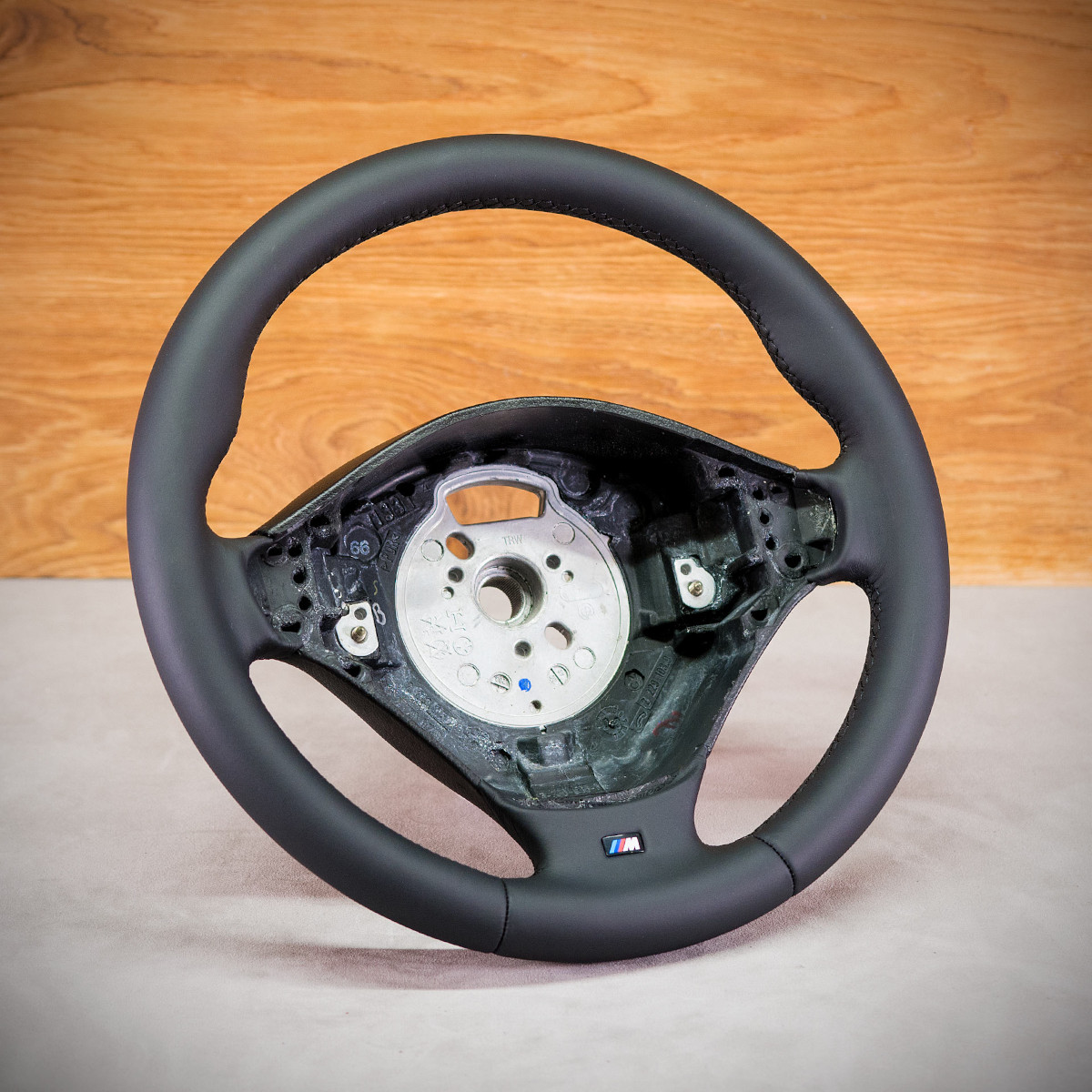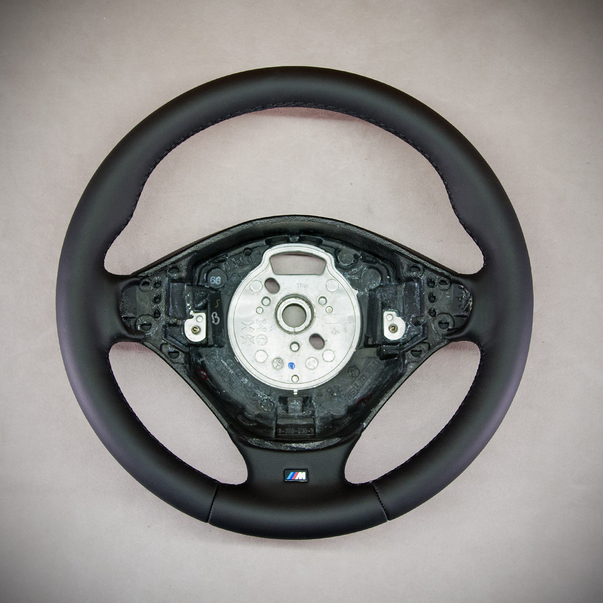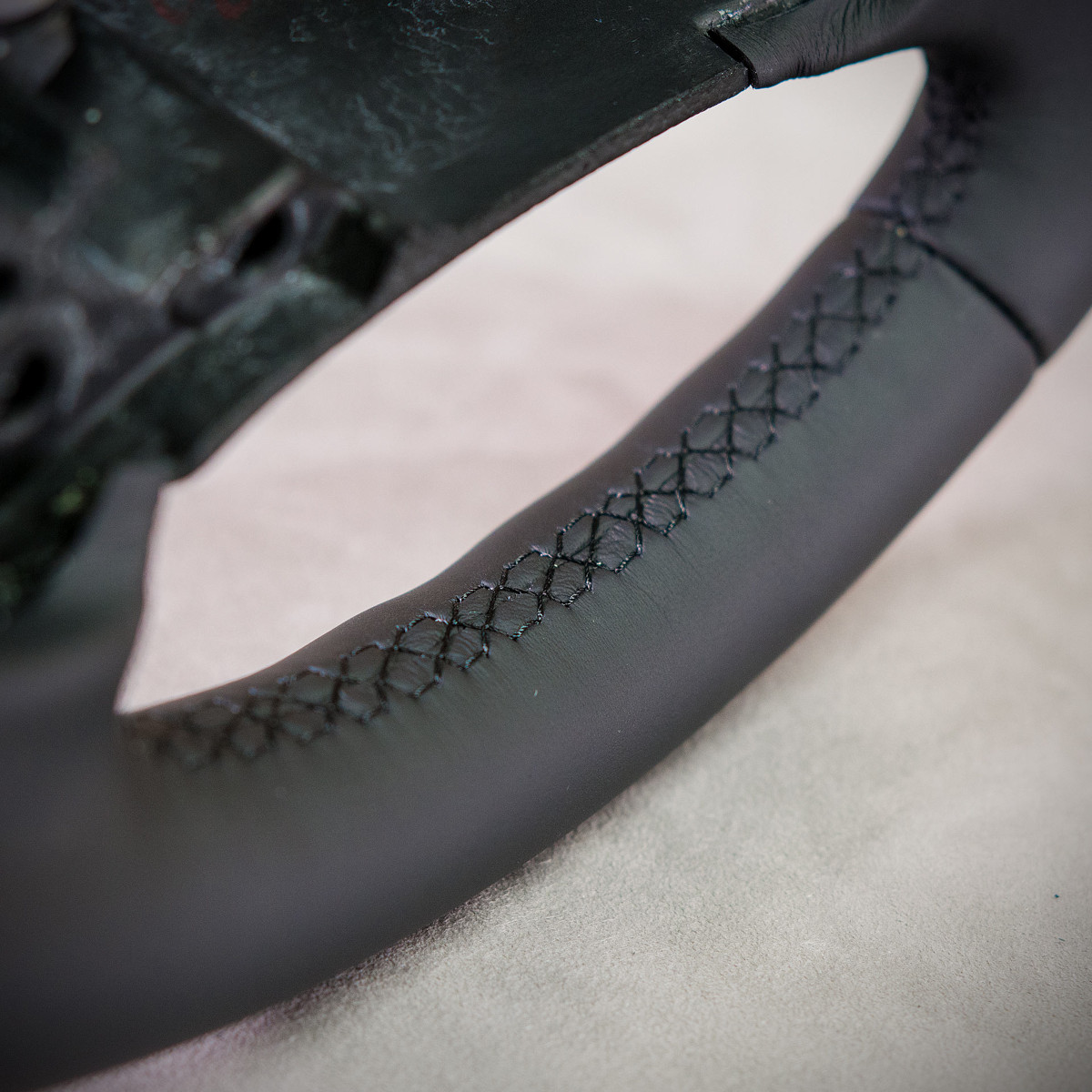 Kierownica BMW E39 w całości została na nowo obszyta skórą gładką Nappa. Jest to jedna z najwyższej jakości skór na rynku europejskim. Zastosowana na kierownicy zapewnia bardzo przyjemny dotyk, jak i niezwykłą trwałość. Zastosowany szew seryjny jest najpopularniejszym szwem na rynku motoryzacyjnym.