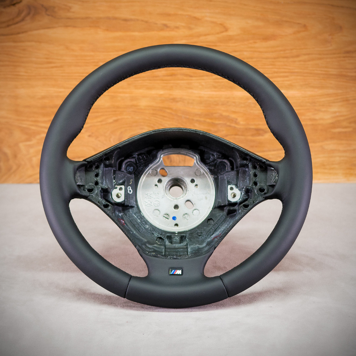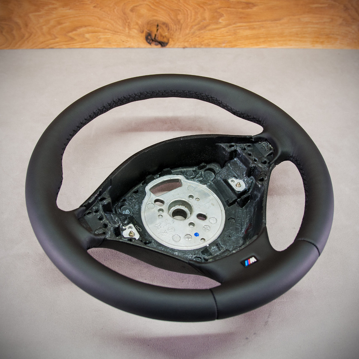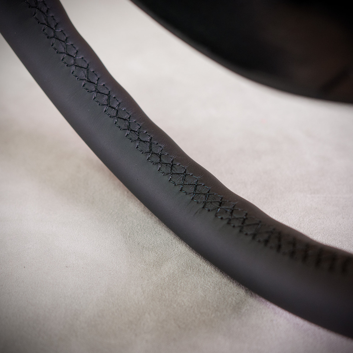 Kierownica BMW E39 w całości została na nowo obszyta skórą gładką Nappa. Jest to jedna z najwyższej jakości skór na rynku europejskim. Zastosowana na kierownicy zapewnia bardzo przyjemny dotyk, jak i niezwykłą trwałość. Zastosowany szew seryjny jest najpopularniejszym szwem na rynku motoryzacyjnym.