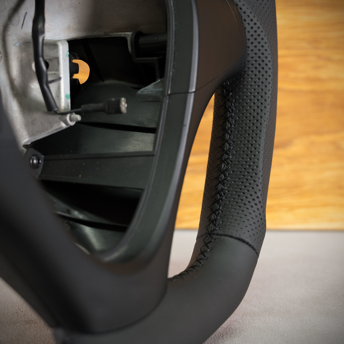 Wybrany Design V3 to trzeci stopień modyfikacji kierownicy wykonany dzięki naszej autorskiej metodzie in3D. Formę stanowi subtelne połączenie poniższych modyfikacji w celu uzyskania harmonijnego połączenia komfortu, bezpieczeństwa oraz sportowego wyglądu: