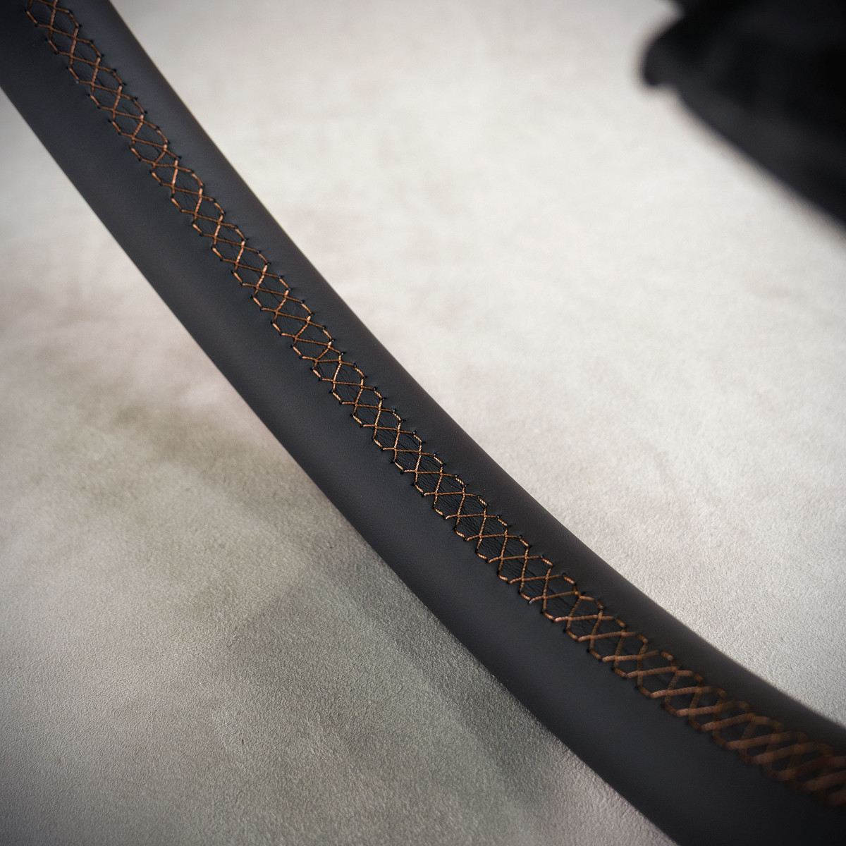 Kierownica DAF Euro 6 została na nowo obszyta skórą gładką oraz perforowaną. Są to skóry najlepszego gatunku dostępne na rynku europejskim. Skóra gładka zapewnia bardzo przyjemny dotyk, jak i niezwykłą trwałość. Skóra perforowana zalecana jest na boki kierownicy. Perforacja, czyli dziurki, nie są wykonane na wylot a jedynie wytłoczone w skórze. To nadaje komfort trzymania. Zastosowany szew seryjny jest najczęściej stosowany w motoryzacji.
