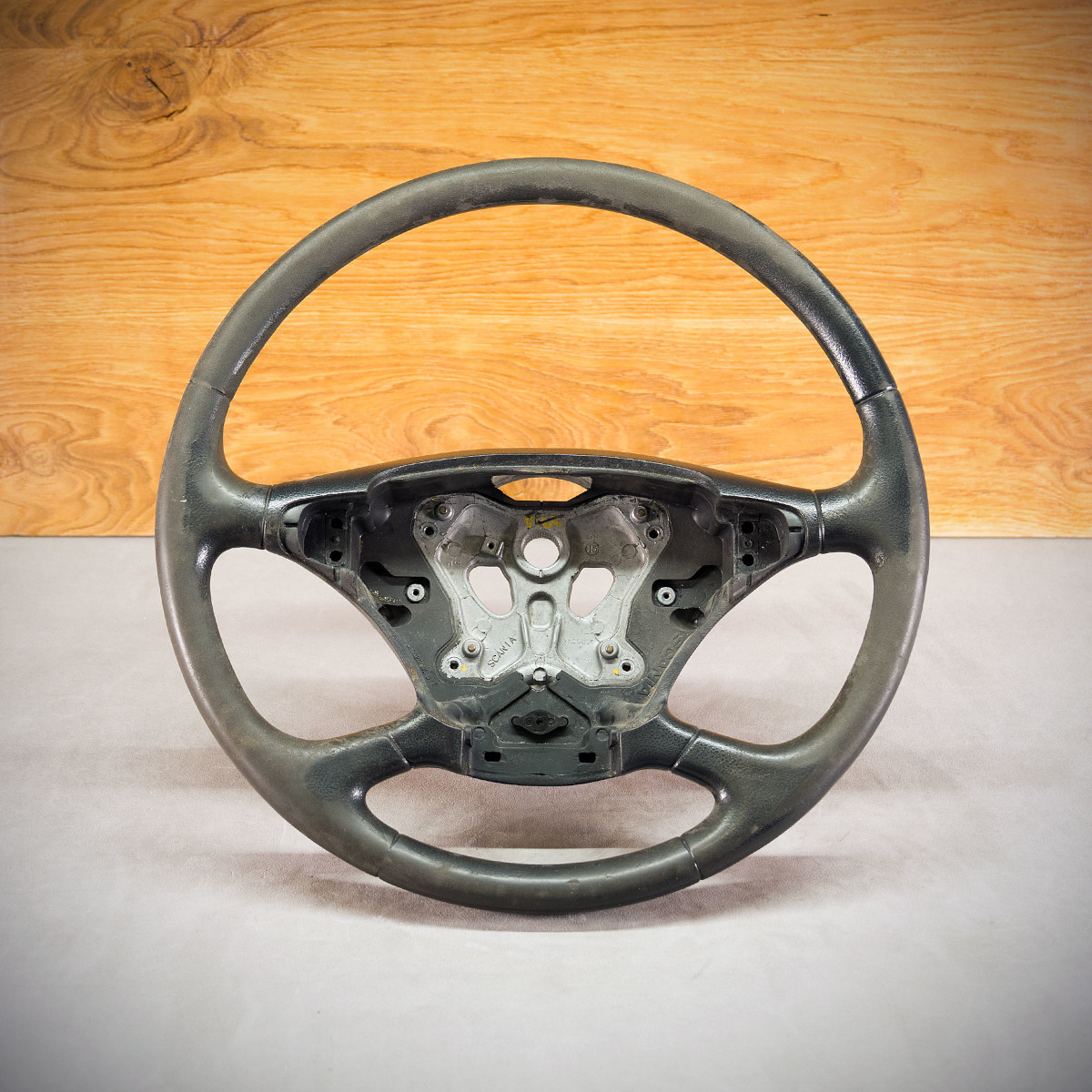 Tuning kierowcy Scania R do samochodu ciężarowego poprzez połączenie modyfikacji oraz obszycia. Na kierownicy zostały dodane bicepsy proste oraz spłaszczenie dołu, obszycie nową skórą sprawia, że kierownica jest komfortowa. Skóra gładka zapewnia bardzo przyjemny dotyk, jak i niezwykłą trwałość. Skóra perforowana nadaje komfort trzymania poprzez wytłoczone dziurki.