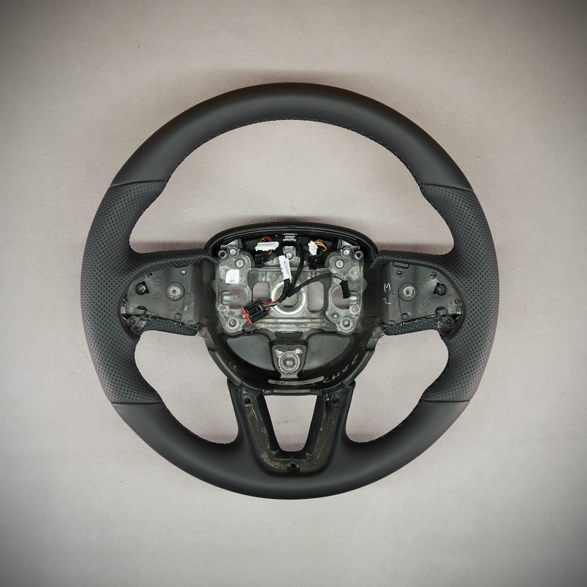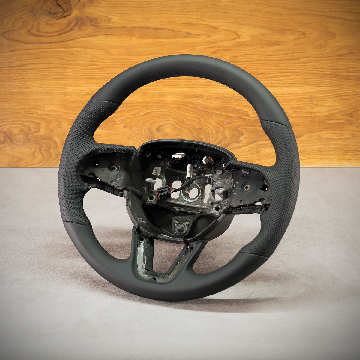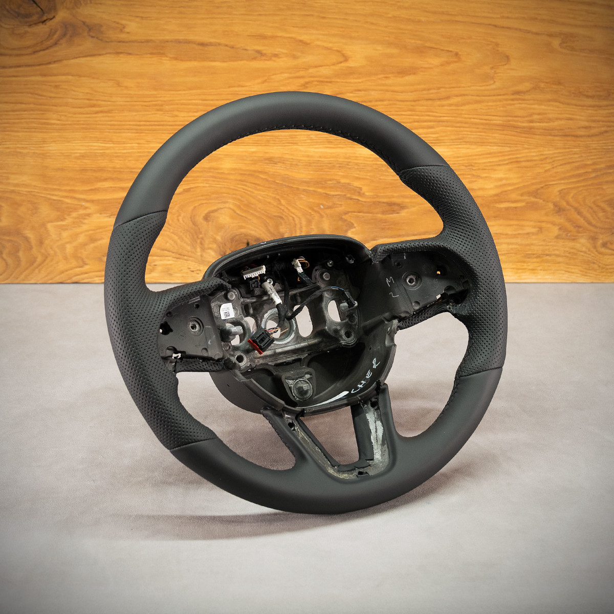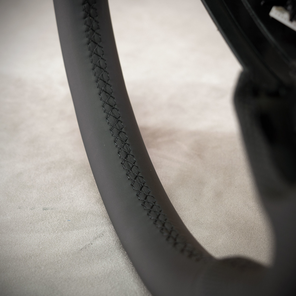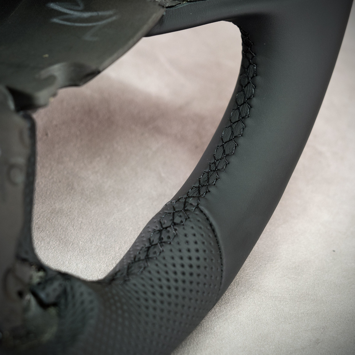 Kierownica Dodge Charger nabrała świeżego wyglądu, została na nowo obszyta skórą gładką oraz perforowaną. Są to skóry najwyższej jakości z dostępnych na rynku europejskim. Skóra gładka zapewnia bardzo przyjemny dotyk, jak i niezwykłą trwałość. Skóra perforowana zalecana jest na boki kierownicy. Perforacja, czyli dziurki, nie są wykonane na wylot a jedynie wytłoczone w skórze. To nadaje komfort trzymania. Zastosowany szew seryjny jest najpopularniejszym szwem na rynku motoryzacyjny, w tej realizacji w kolorze czarnym.