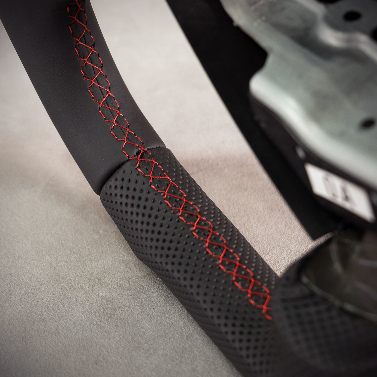 Wybrany Design V3 to trzeci stopień modyfikacji kierownicy wykonany dzięki naszej autorskiej metodzie in3D. Formę stanowi subtelne połączenie poniższych modyfikacji w celu uzyskania harmonijnego połączenia komfortu, bezpieczeństwa oraz sportowego wyglądu: