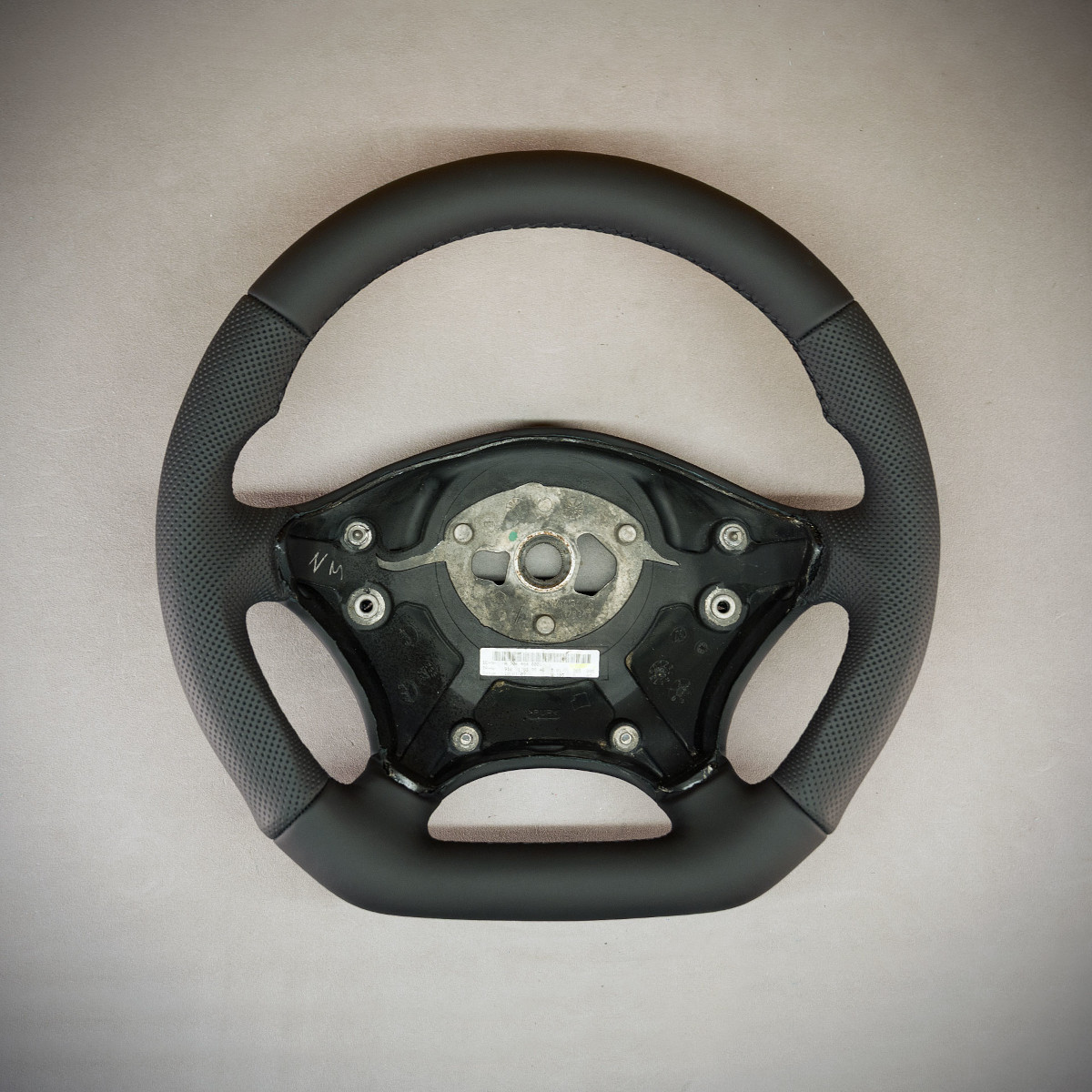 Bardzo wyraźny tuning kierownicy Mercedes-Benz Sprinter poprzez połączenie modyfikacji oraz obszycia. Kierownica obszyta skórą gładką oraz perforowana. Są to skóry najlepszego gatunku z dostępnych na rynku europejskim. Skóra gładka zapewnia bardzo przyjemny dotyk, jak i niezwykłą trwałość. Skóra perforowana zalecana jest na boki kierownicy. Perforacja, czyli dziurki, nie są wykonane na wylot a jedynie wytłoczone w skórze. To nadaje komfort trzymania.