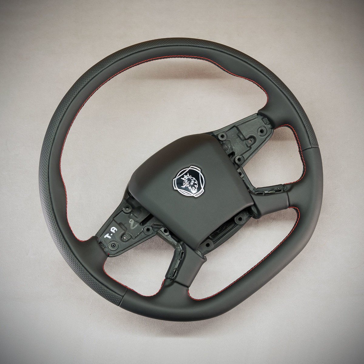 Kierownica Scania NGS została na nowo obszyta skórą gładką oraz perforowaną. Są to skóry najwyższej jakości z dostępnych na rynku europejskim. Skóra gładka zapewnia bardzo przyjemny dotyk, jak i niezwykłą trwałość. Skóra perforowana nadaje komfort trzymania. Zastosowany szew RS to bardzo czasochłonny i wymagający dużej zręczności szew. Jednak wynik końcowy jest nieporównywalny!