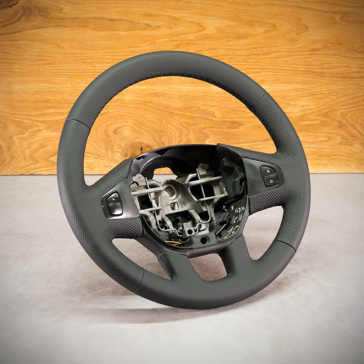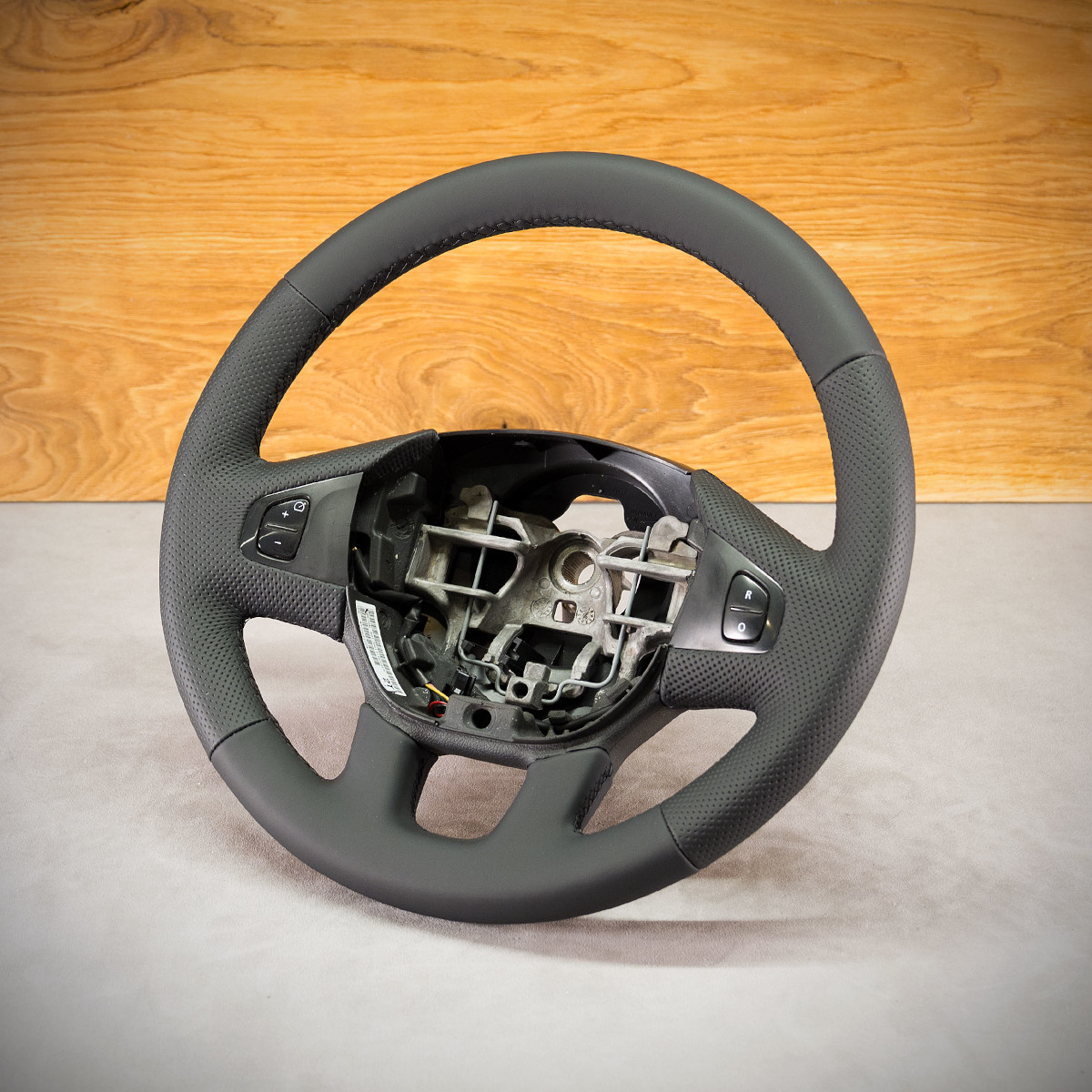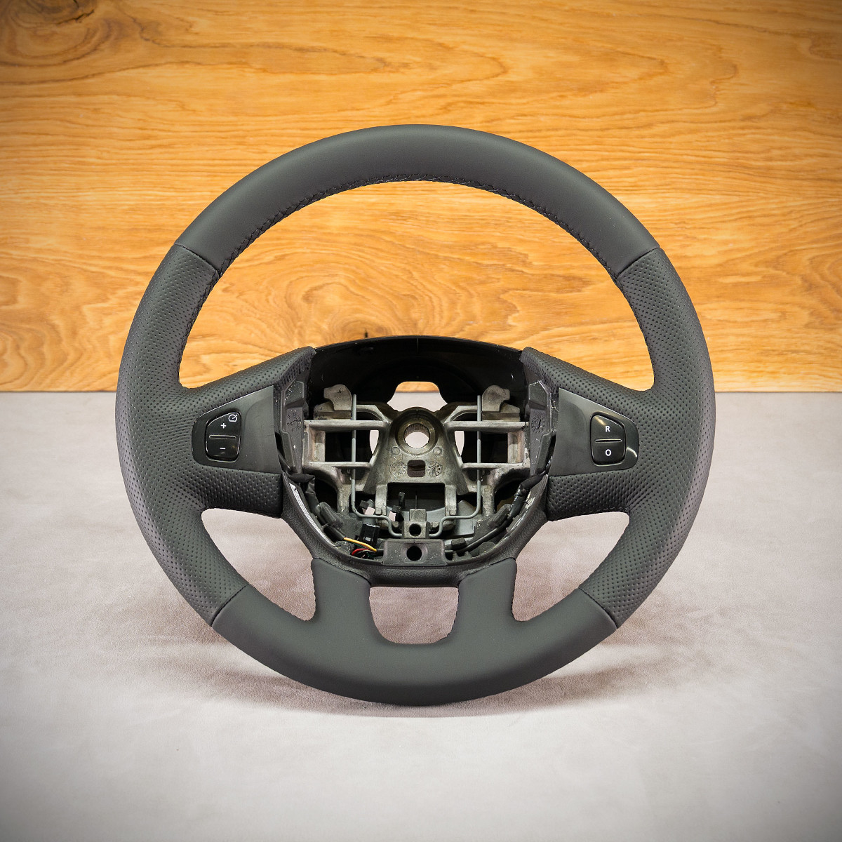 Kierownica Opel Vivaro obszyta skórą naturalną. Skórą gładką oraz perforowaną. Są to skóry najlepszego gatunku z dostępnych na rynku europejskim. Skóra gładka zapewnia bardzo przyjemny dotyk, jak i niezwykłą trwałość. Skóra perforowana zalecana jest na boki kierownicy. Perforacja, czyli dziurki, nie są wykonane na wylot a jedynie wytłoczone w skórze. To nadaje komfort trzymania. Szew seryjny jest najczęściej wybierany przez naszych klientów.