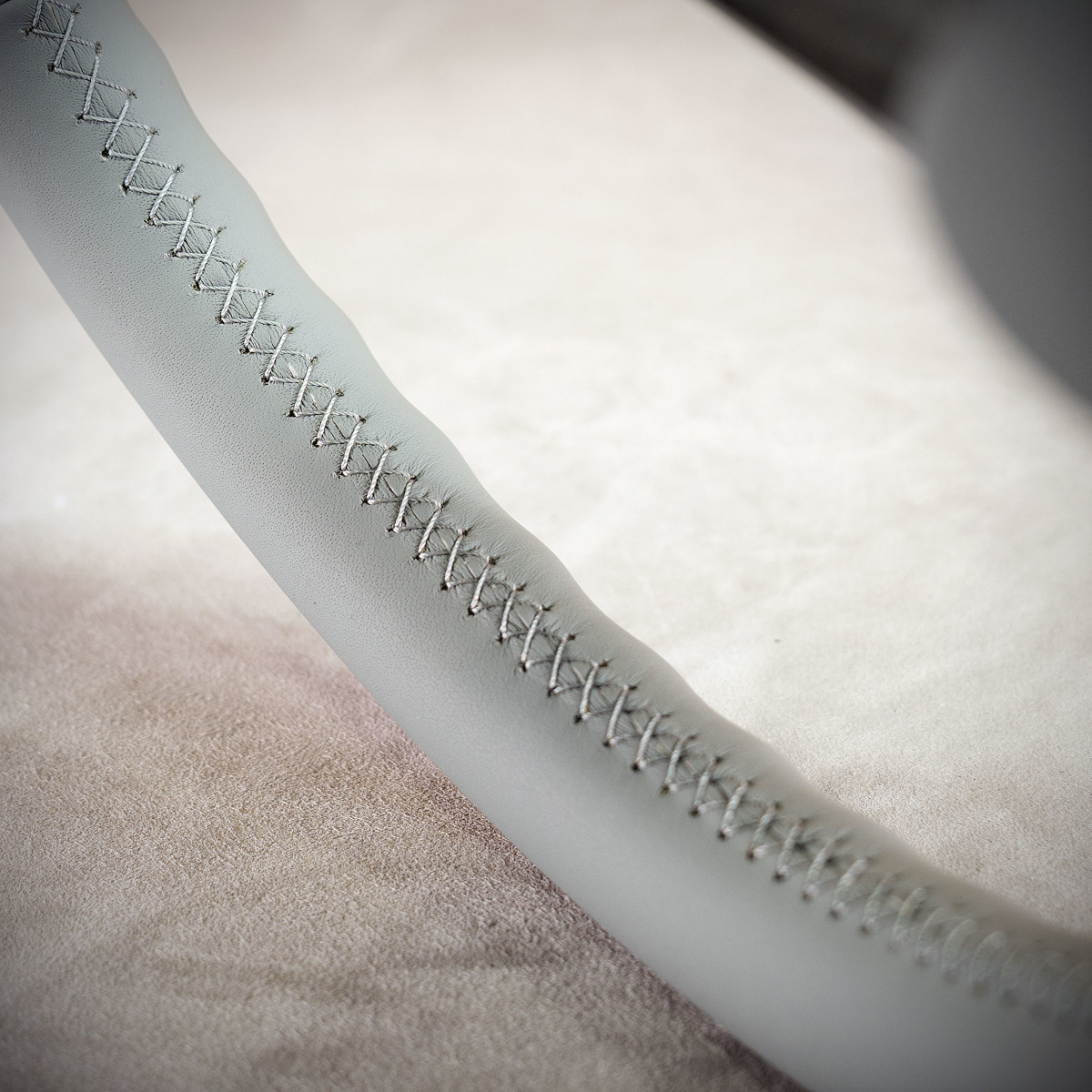 Kierownica Renault Twingo nabrała świeżego wyglądu, w całości została na nowo obszyta skórą gładką Nappa. Skóra ta jest najwyższej jakości z dostępnych skór na rynku europejskim. Zastosowana na kierownicy zapewnia zarówno bardzo przyjemny dotyk, jak i niezwykłą trwałość. Szew seryjny jest najpopularniejszym szwem na rynku motoryzacyjnym.