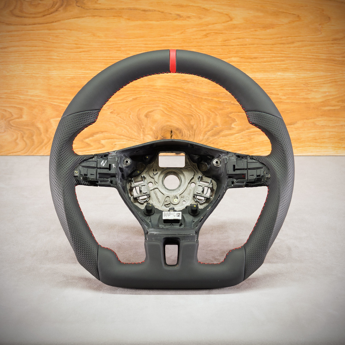Wybrany Design V5 to piąty stopień modyfikacji kierownicy wykonany dzięki naszej autorskiej metodzie in3D. Formę stanowi subtelne połączenie poniższych modyfikacji w celu uzyskania harmonijnego połączenia komfortu, bezpieczeństwa oraz sportowego wyglądu: