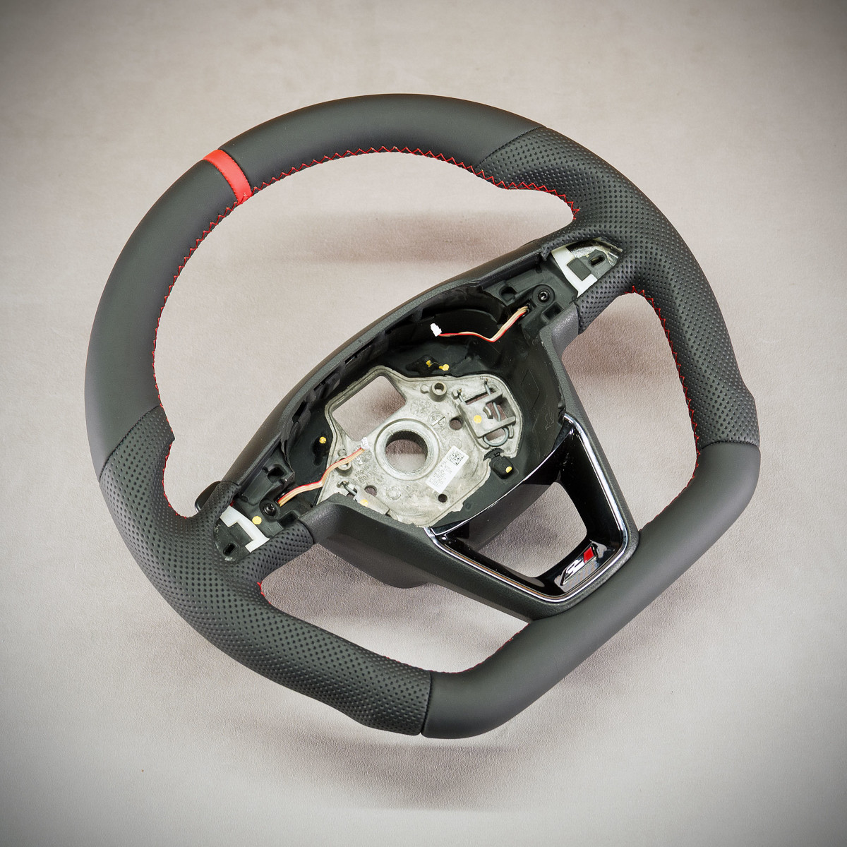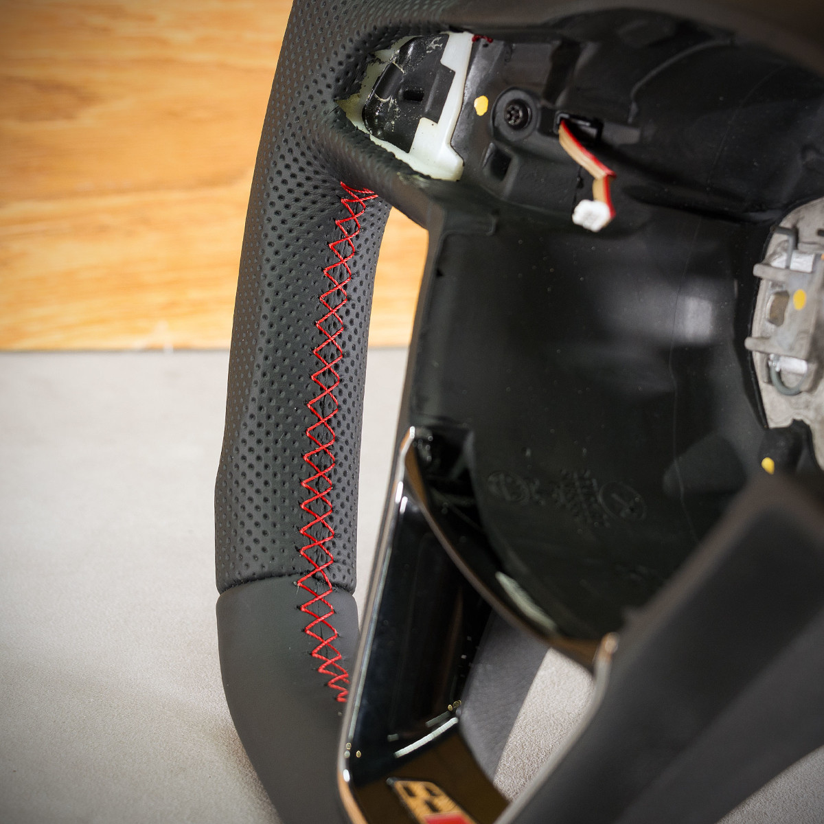 Wybrany Design V3 to trzeci stopień modyfikacji kierownicy wykonany dzięki naszej autorskiej metodzie in3D. Formę stanowi subtelne połączenie poniższych modyfikacji w celu uzyskania harmonijnego połączenia komfortu, bezpieczeństwa oraz sportowego wyglądu: