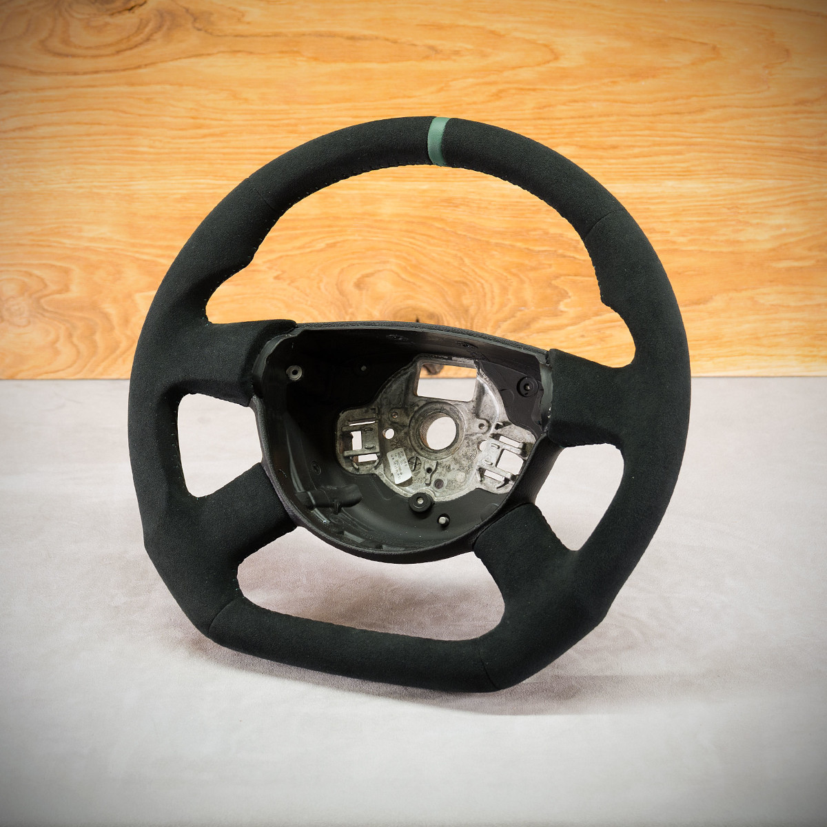 Bardzo wyraźny tuning kierownicy Volkswagen Transporter T5 poprzez połączenie modyfikacji oraz obszycia. Kierownica obszyta Alcantarą®, która jest niezwykle elegancka. Zastosowany szew jodełka, to klasyka, jest mocniejszy od szwu seryjnego.