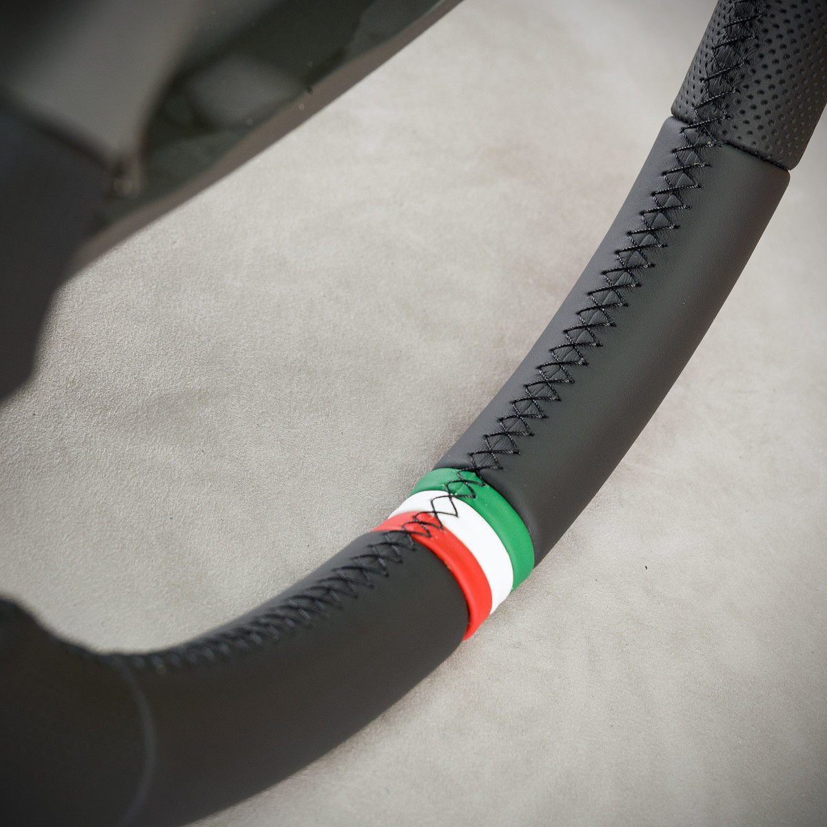 Wybrany Design V3 to trzeci stopień modyfikacji kierownicy wykonany dzięki naszej autorskiej metodzie in3D. Formę stanowi subtelne połączenie poniższych modyfikacji w celu uzyskania harmonijnego połączenia komfortu, bezpieczeństwa oraz sportowego wyglądu: